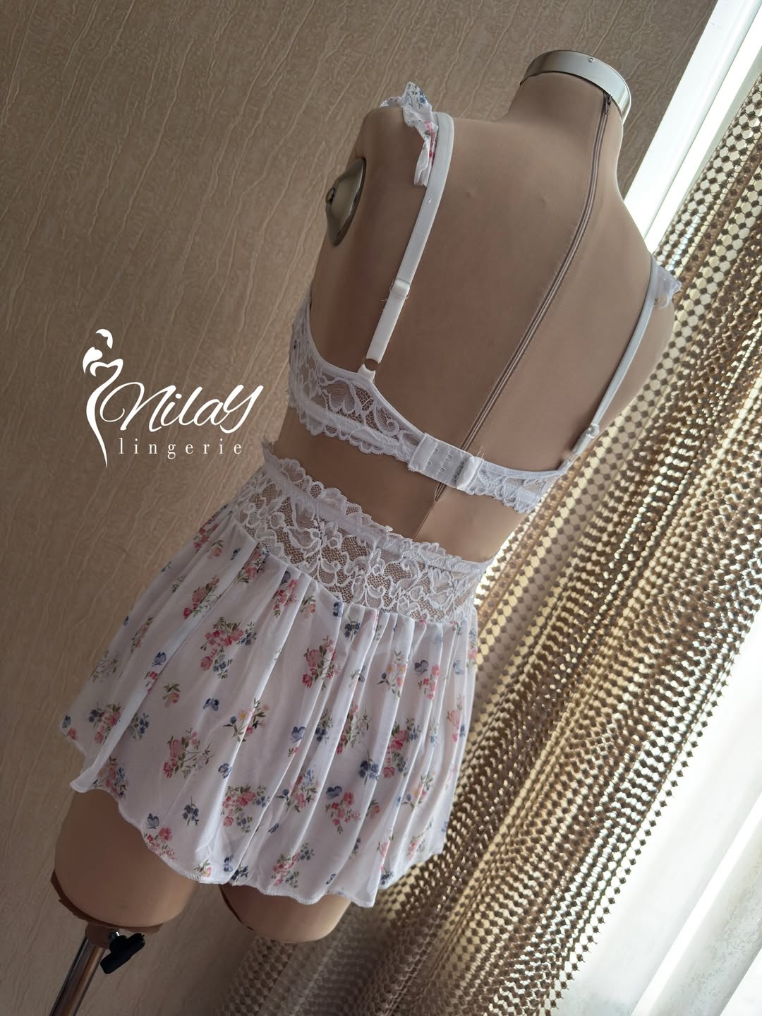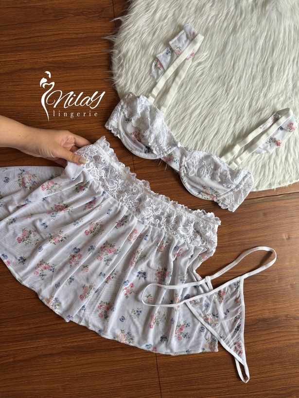 تک رنگ سفید گلدار فنردار ، بند قابل تنظیم ، قزن خور