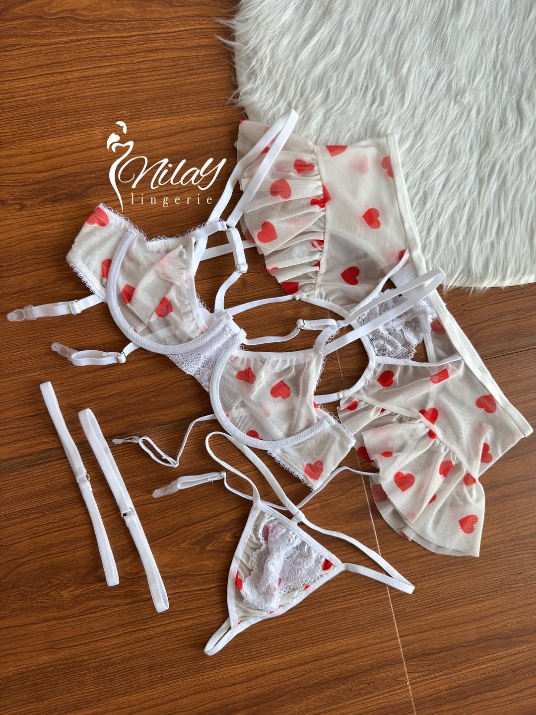خاص تریییین ست قلبی ست چهار تیکه فنردار قلبی تنخور بینظیرییییی داره تک رنگ سفید قلبی بند قابل تنظیم ، قزن خور سایزبندی: لارج ، ایکس لارج مناسب برای 36 تا 44 لارج 36,38,40 ایکس لارج 42,44