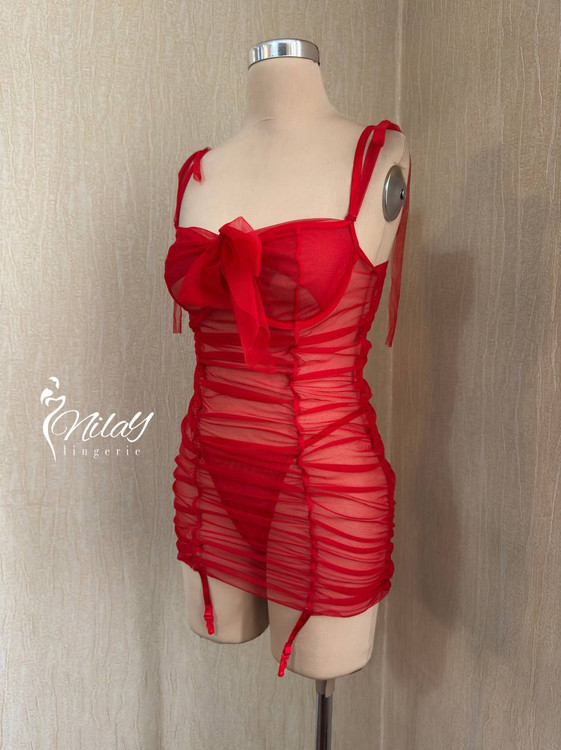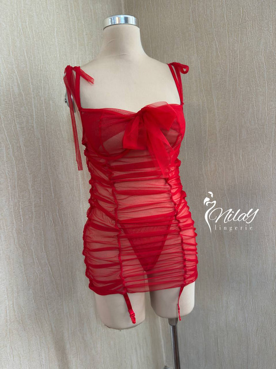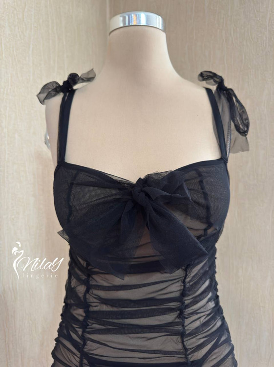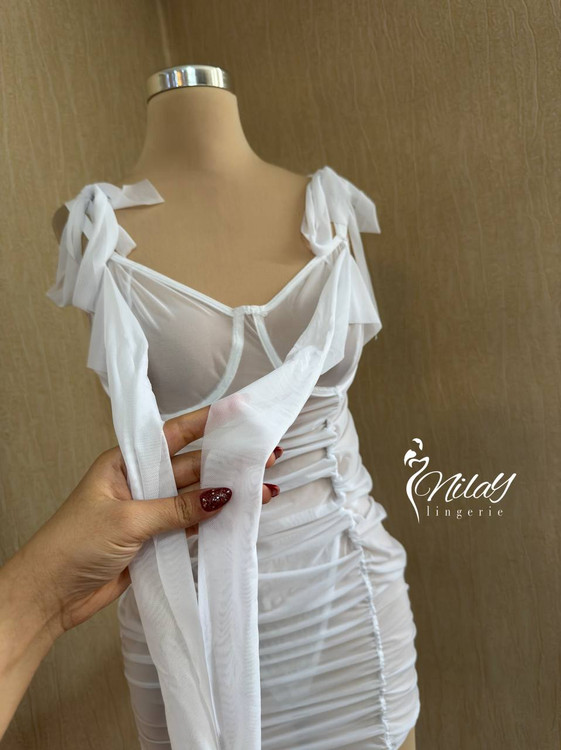 پیراهن کاپ فنردار جلو گره ای ، بند سرشانه بند گره ای هم داره
