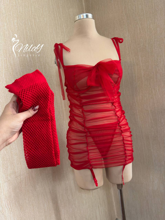 ست پیراهن جذاااب همراه جوراب فیشنت زنبوری بالا زانو 😍