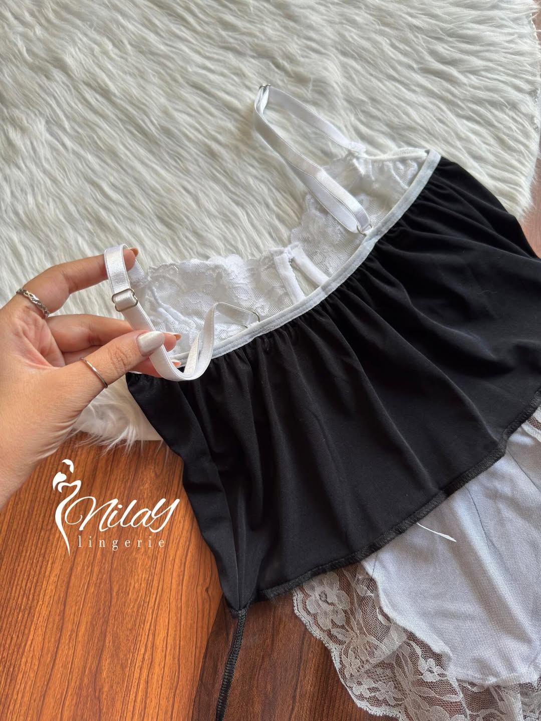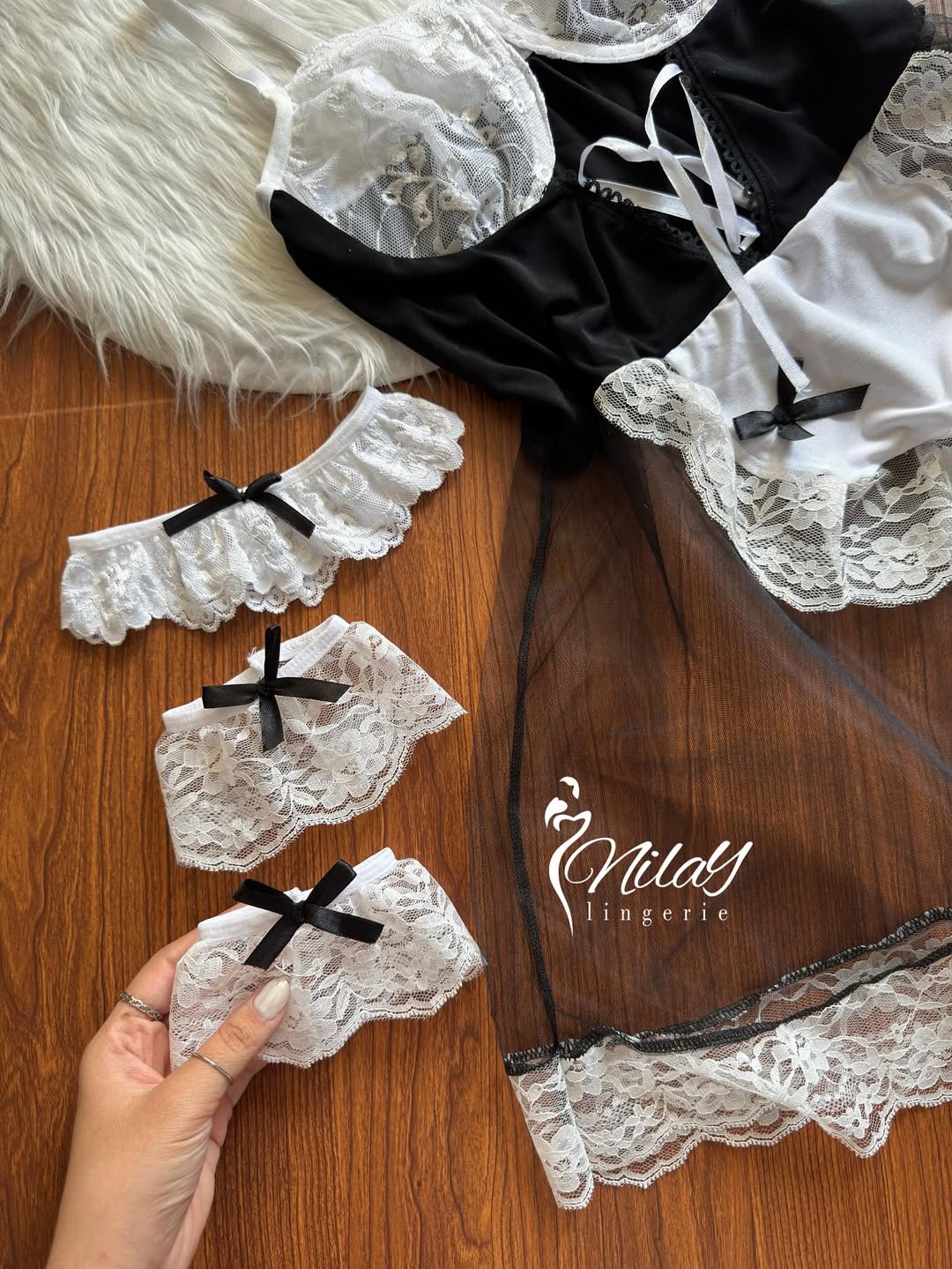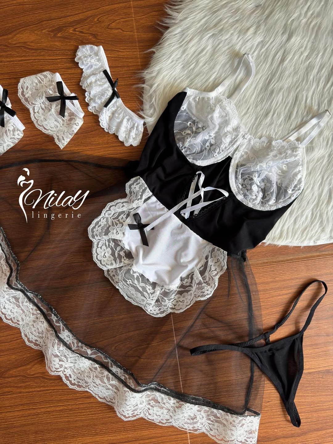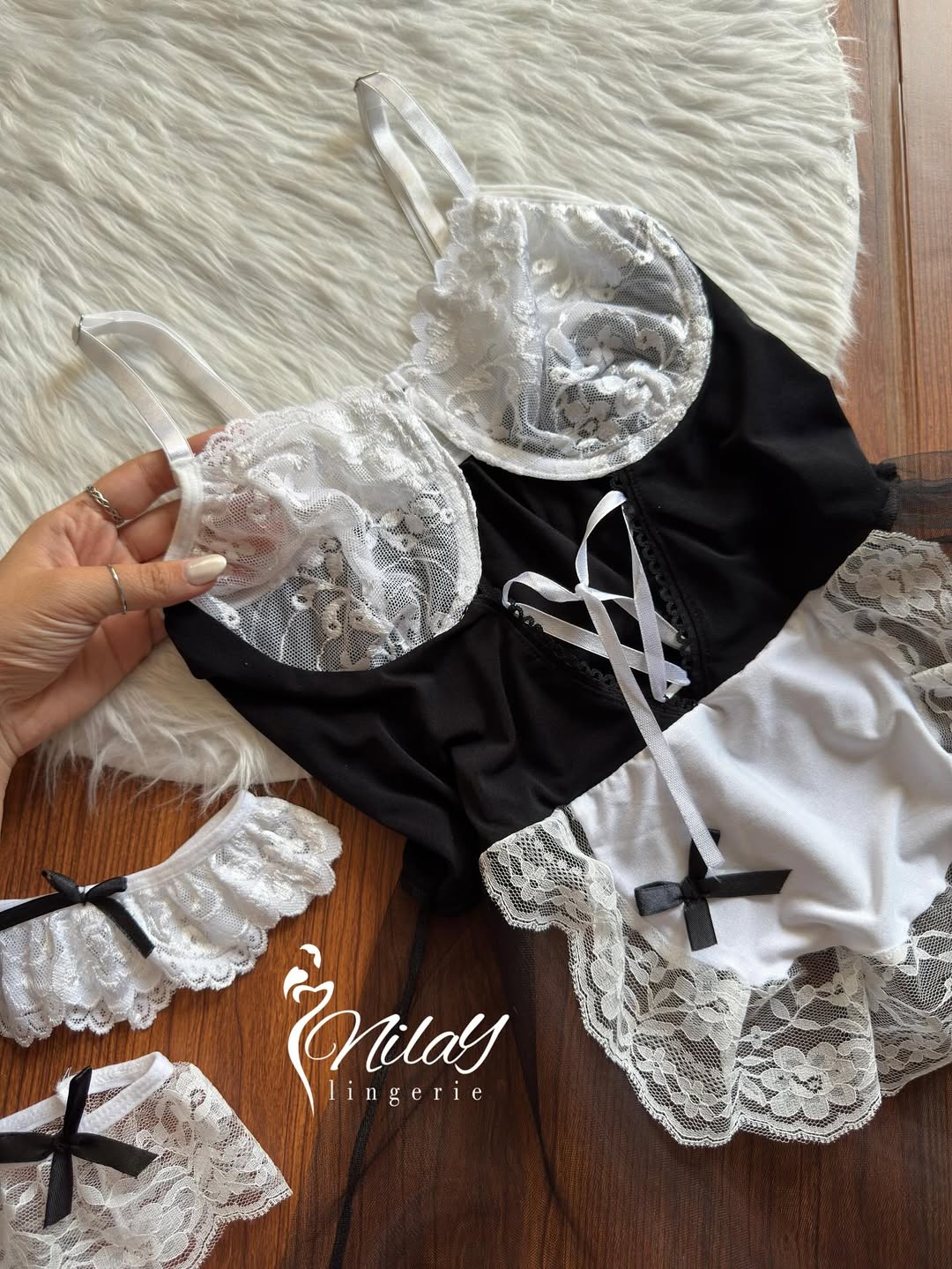 کاستوم خدمتکاری ( چهار تیکه ) کاپ فنردار ، بند قابل تنظیم تنخور جذاب کیفیت عالییی سایزبندی: لارج ، ایکس لارج مناسب از ۳۸ تا ۴۴ لارج ۳۸،۴۰ ایکس لارج ۴۲،۴۴